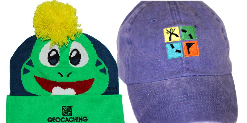 Schildmützen und Wollmützen mit dem Geocaching Logo oder Geocaching Motiven sind ein beliebtes Erkennungszeichen unter Geocachern.