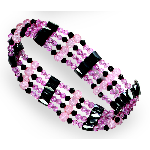 Armband aus farbigen Glas- und schwarzen Magnetperlen.