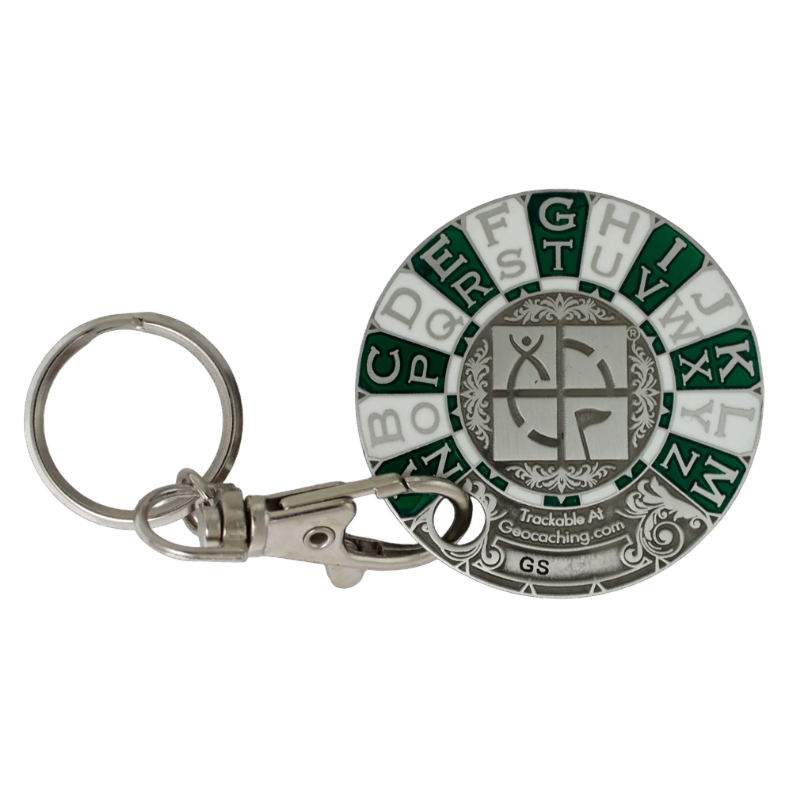 Vor mehr als 2000 Jahren benutzte Gaius Julius Caesar eine Verschlüsselungstechnik die uns heute in abgewandelter Form als Rot13 bekannt ist. Dabei wird jeder Buchstabe durch denjenigen ersezt, der 13 Schritte weiter im Alphabet zu finden ist. Diese Codierung ist nicht sehr sicher aber effektiv bei Geocaches, die nicht gleich lesbar gemacht werden sollen. Für die Entschlüsselung solcher Hinweise ist diese Coin ein unschätzbarer Helfer, den man immer bei sich tragen kann, weil sie als Schlüsselanhänger konzipiert wurde.