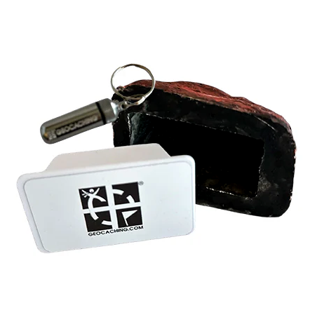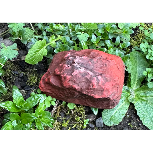 This deceptive little cache container looks like just another rock out on the trail but turn it over and you will discover a small watertight capsule hidden behind the back panel.